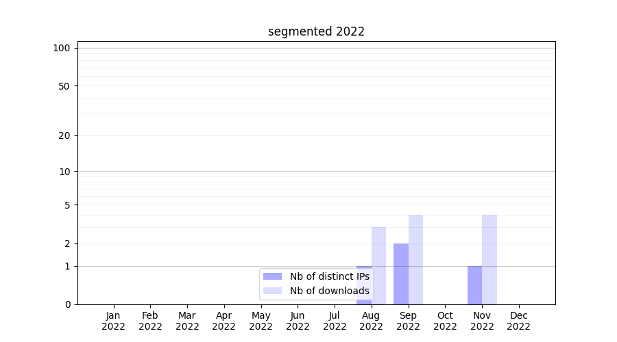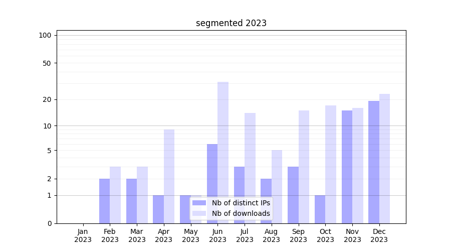 Number of downloads for experiment package segmented, year by year, from 2025 back to 2014 (years with no downloads are omitted):
