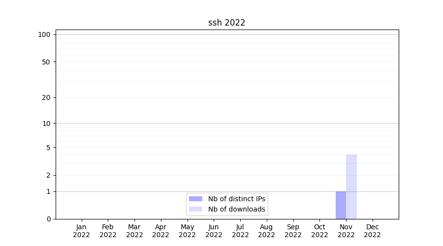 Number of downloads for experiment package ssh, year by year, from 2025 back to 2014 (years with no downloads are omitted):