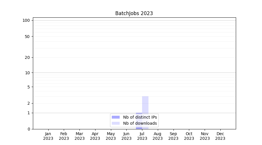 Number of downloads for workflow package BatchJobs, year by year, from 2025 back to 2015 (years with no downloads are omitted):