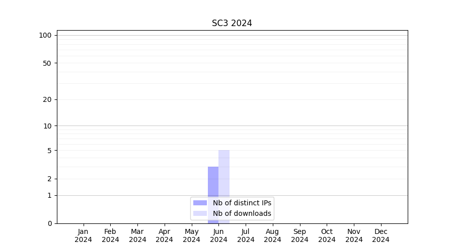 Number of downloads for workflow package SC3, year by year, from 2025 back to 2015 (years with no downloads are omitted):