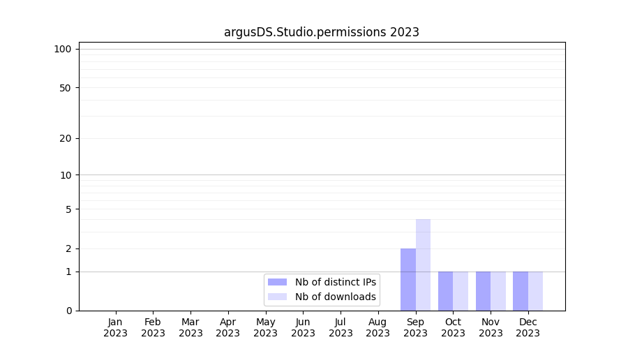 Number of downloads for workflow package argusDS.Studio.permissions, year by year, from 2025 back to 2015 (years with no downloads are omitted):