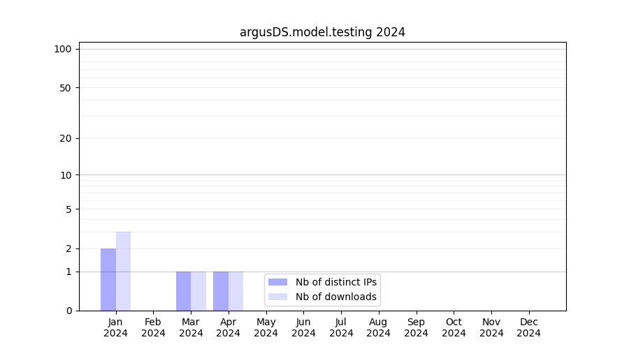 Number of downloads for workflow package argusDS.model.testing, year by year, from 2025 back to 2015 (years with no downloads are omitted):