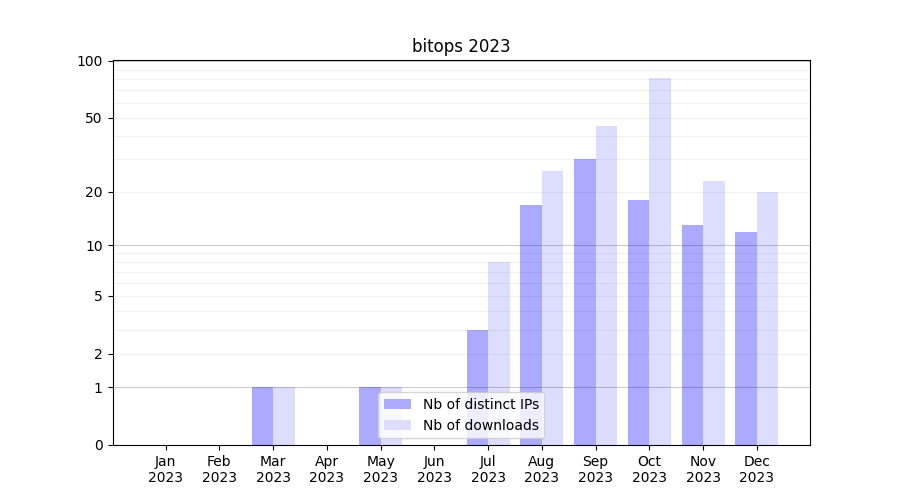 Number of downloads for workflow package bitops, year by year, from 2025 back to 2015 (years with no downloads are omitted):