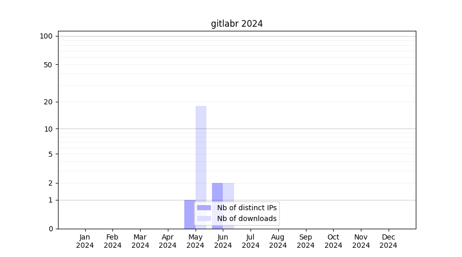 Number of downloads for workflow package gitlabr, year by year, from 2025 back to 2015 (years with no downloads are omitted):
