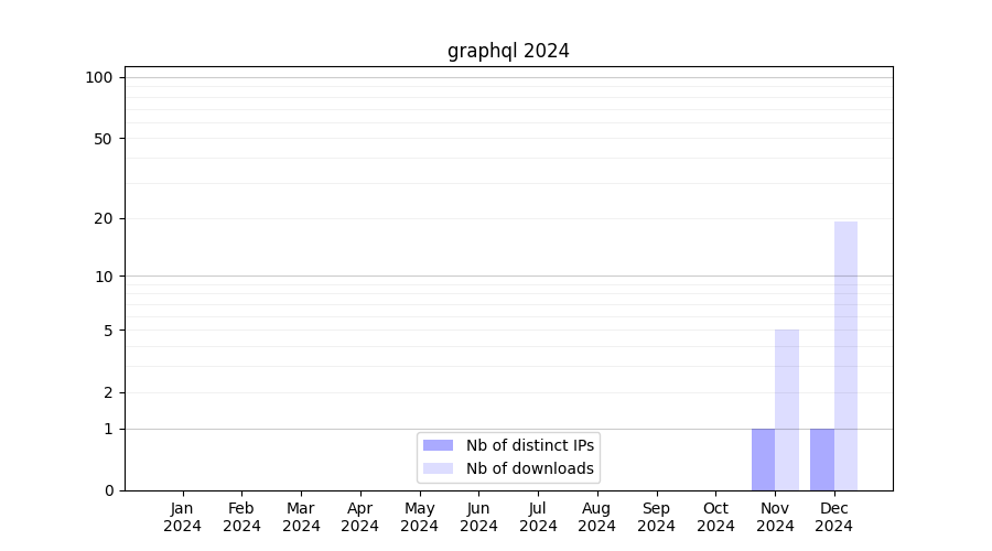 Number of downloads for workflow package graphql, year by year, from 2025 back to 2015 (years with no downloads are omitted):