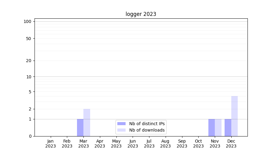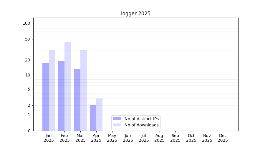 Number of downloads for workflow package logger, year by year, from 2025 back to 2015 (years with no downloads are omitted):