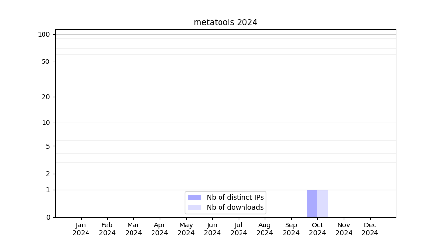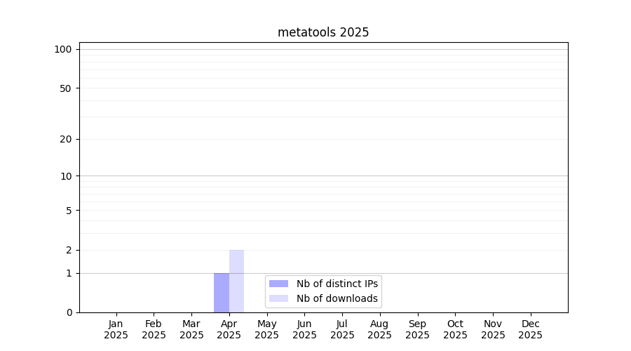 Number of downloads for workflow package metatools, year by year, from 2025 back to 2015 (years with no downloads are omitted):