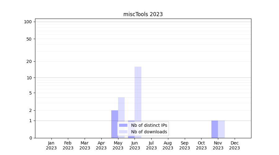 Number of downloads for workflow package miscTools, year by year, from 2025 back to 2015 (years with no downloads are omitted):
