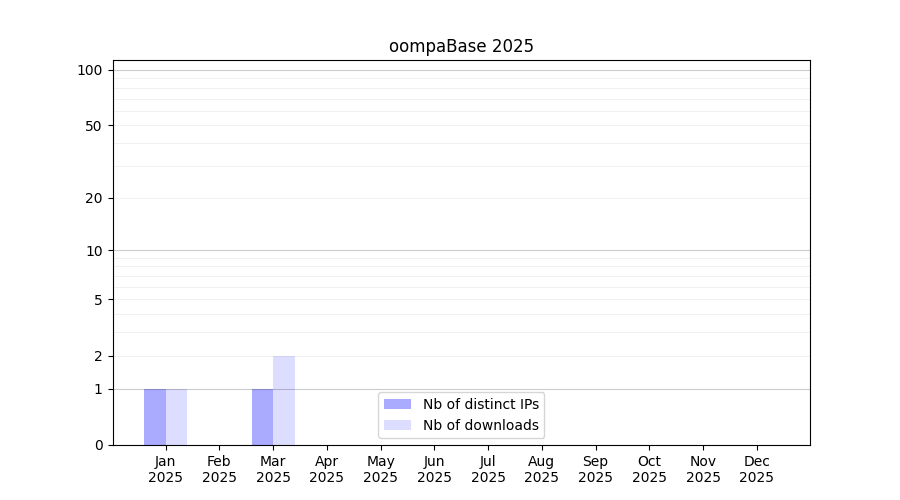 Number of downloads for workflow package oompaBase, year by year, from 2025 back to 2015 (years with no downloads are omitted):