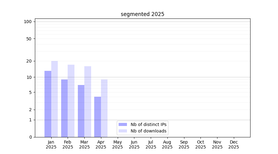 Number of downloads for workflow package segmented, year by year, from 2025 back to 2015 (years with no downloads are omitted):
