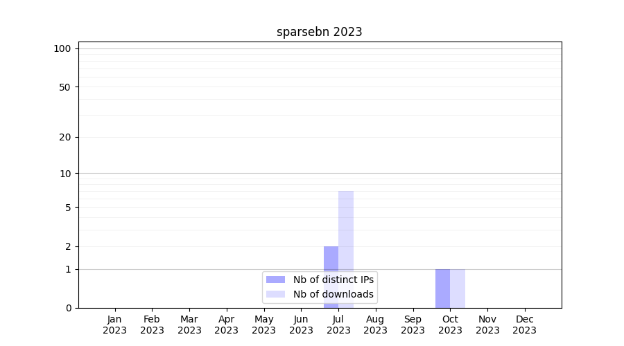 Number of downloads for workflow package sparsebn, year by year, from 2025 back to 2015 (years with no downloads are omitted):