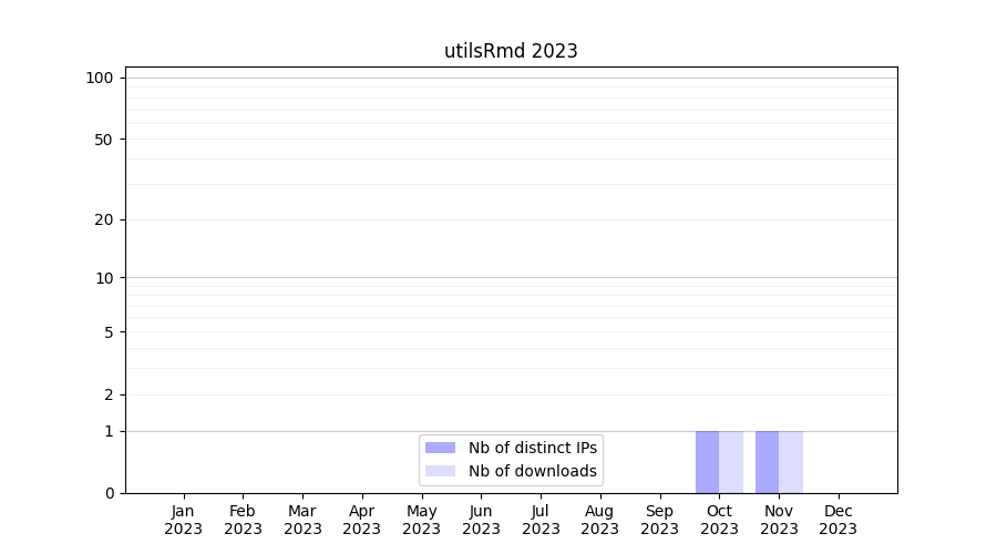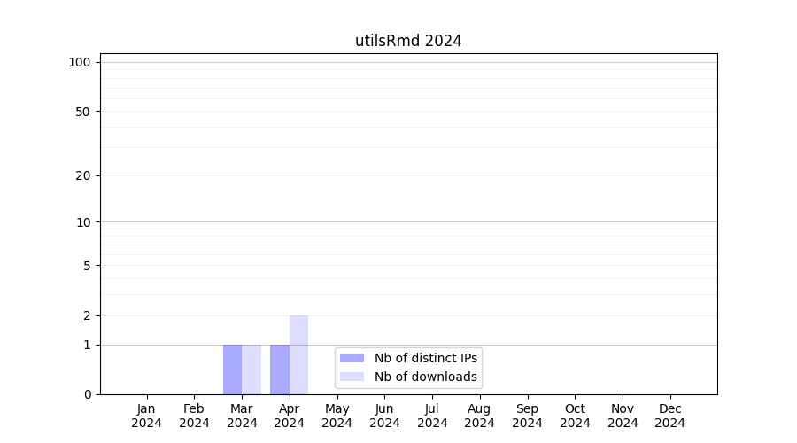 Number of downloads for workflow package utilsRmd, year by year, from 2025 back to 2015 (years with no downloads are omitted):