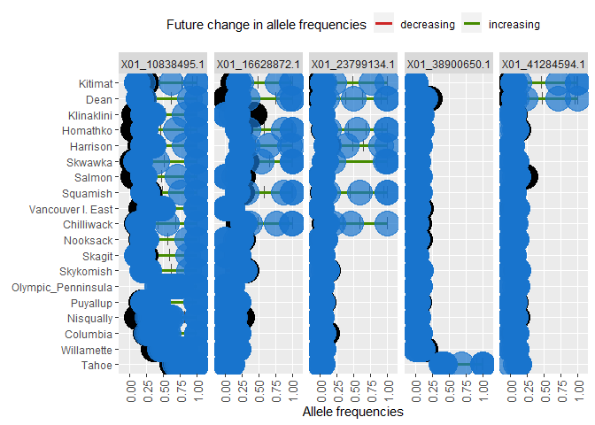 geom_segment(aes(x=Pop, y=Allele.freq, xend=Pop, yend=Freq.e2, colour=increasing),