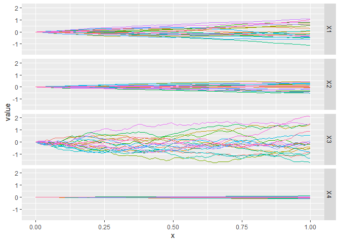 actual data given to CGGP. Each wiggly line represents a random Gaussian