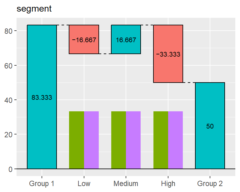 If a subgroup column is a factor, table() and plot() respect its factor level order. This is useful when you want to keep a meaningful predefined order, such as "Low", "Medium", and "High", instead of ordering categories by their contributions.