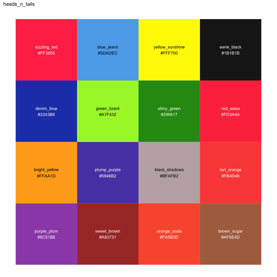 These palettes are not necessarily (and unlikely to be) color-blind friendly. For public-facing work, consider a color-blind friendly package, such as Cory McCartan’s wacolors.