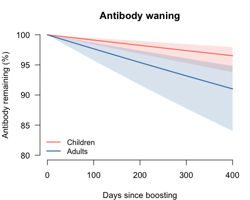 "boosting_waning" Antibody boosting and waning rates Biological response, may be shared across groups
