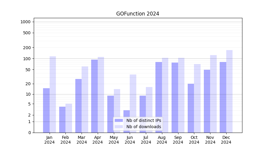 Number of downloads for software package GOFunction, year by year, from 2025 back to 2014 (years with no downloads are omitted):