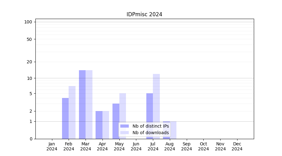 Number of downloads for software package IDPmisc, year by year, from 2025 back to 2014 (years with no downloads are omitted):