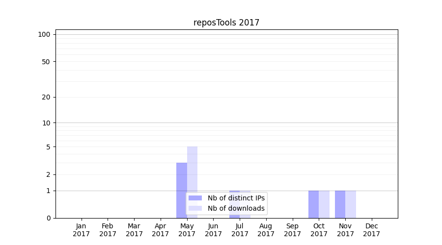 Number of downloads for software package reposTools, year by year, from 2025 back to 2014 (years with no downloads are omitted):
