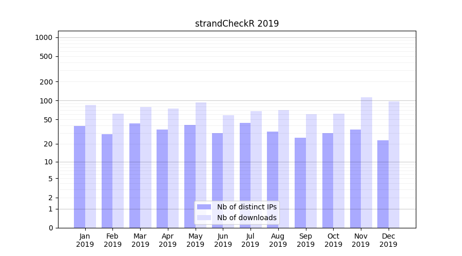 Download stats for software package strandCheckR