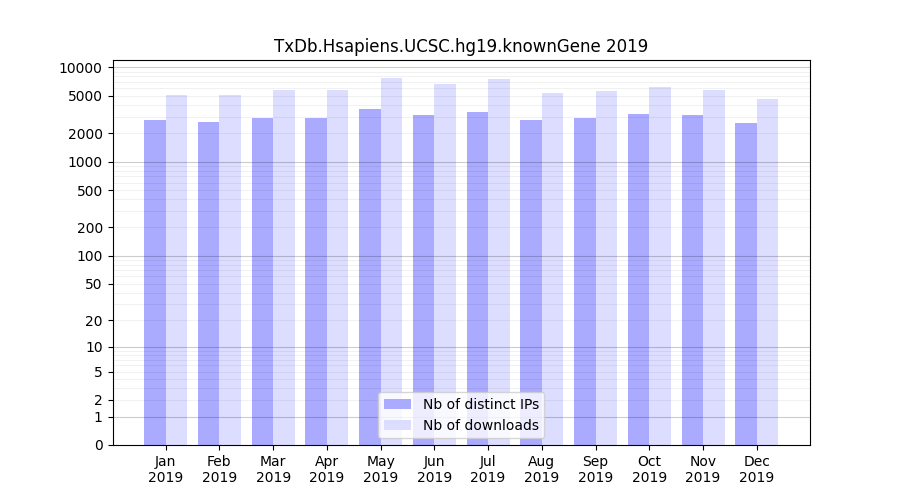 Download stats for annotation package TxDb.Hsapiens.UCSC.hg19.knownGene