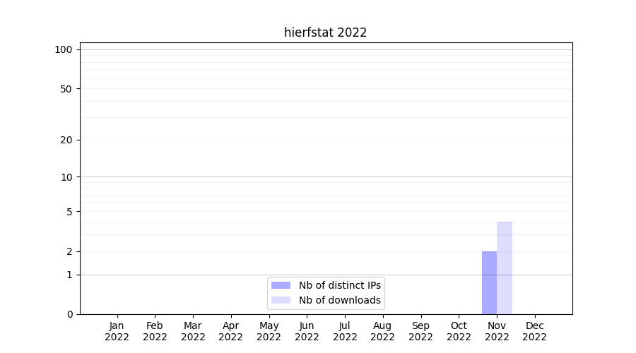Number of downloads for annotation package hierfstat, year by year, from 2025 back to 2014 (years with no downloads are omitted):