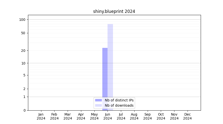 Number of downloads for annotation package shiny.blueprint, year by year, from 2025 back to 2014 (years with no downloads are omitted):