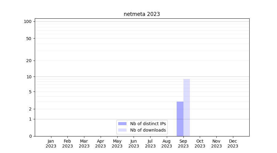 Number of downloads for experiment package netmeta, year by year, from 2025 back to 2014 (years with no downloads are omitted):