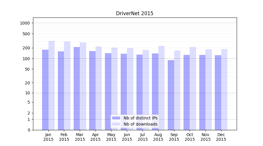 Number of downloads for software package DriverNet, year by year, from 2025 back to 2014 (years with no downloads are omitted):