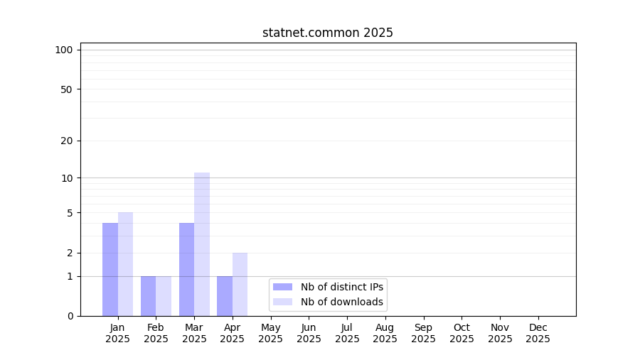 Number of downloads for software package statnet.common, year by year, from 2025 back to 2014 (years with no downloads are omitted):