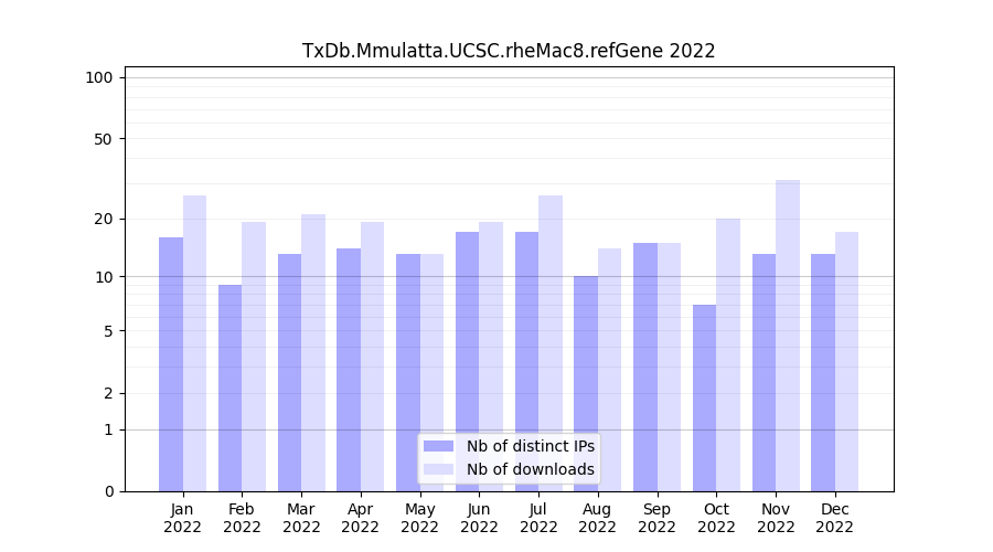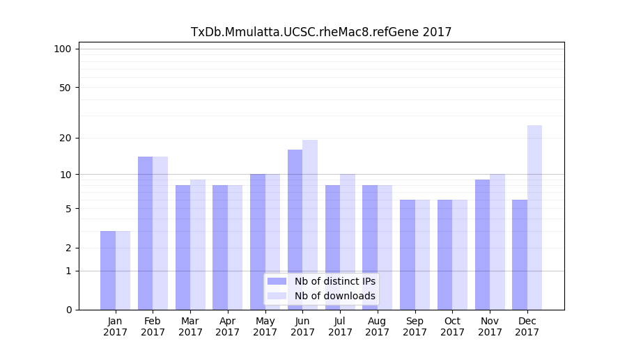 Download stats for annotation package TxDb.Mmulatta.UCSC.rheMac8.refGene