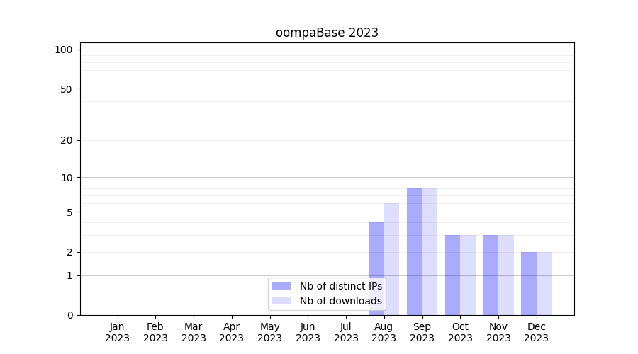 Month | Nb of distinct IPs | Nb of downloads |