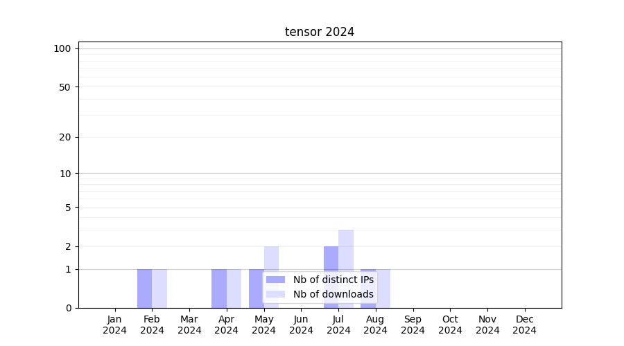 Number of downloads for annotation package tensor, year by year, from 2025 back to 2014 (years with no downloads are omitted):
