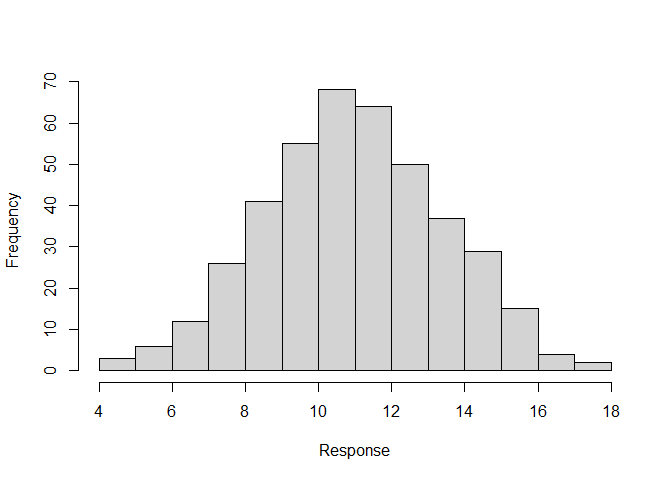 hist(sim3$response, xlab = "Response", main = "")