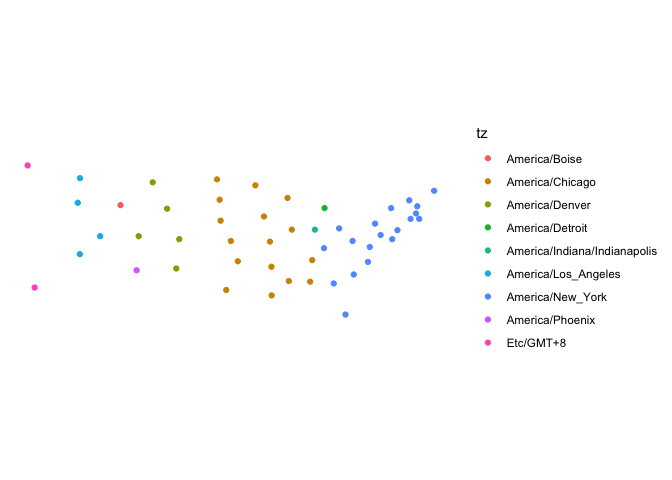 ggplot(cbind(as.data.frame(coordinates(state_centers_sp)), tz = state_centers_sp$tz),