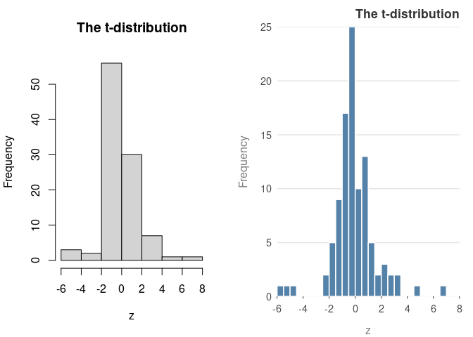 hist_p(z, main = "The t-distribution")
