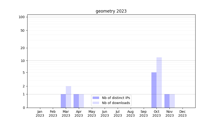 Number of downloads for software package geometry, year by year, from 2025 back to 2014 (years with no downloads are omitted):