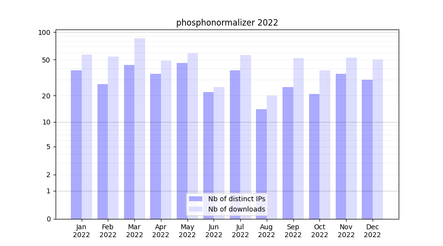Number of downloads for software package phosphonormalizer, year by year, from 2025 back to 2014 (years with no downloads are omitted):