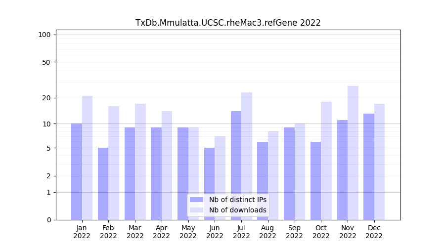 Download stats for annotation package TxDb.Mmulatta.UCSC.rheMac3.refGene