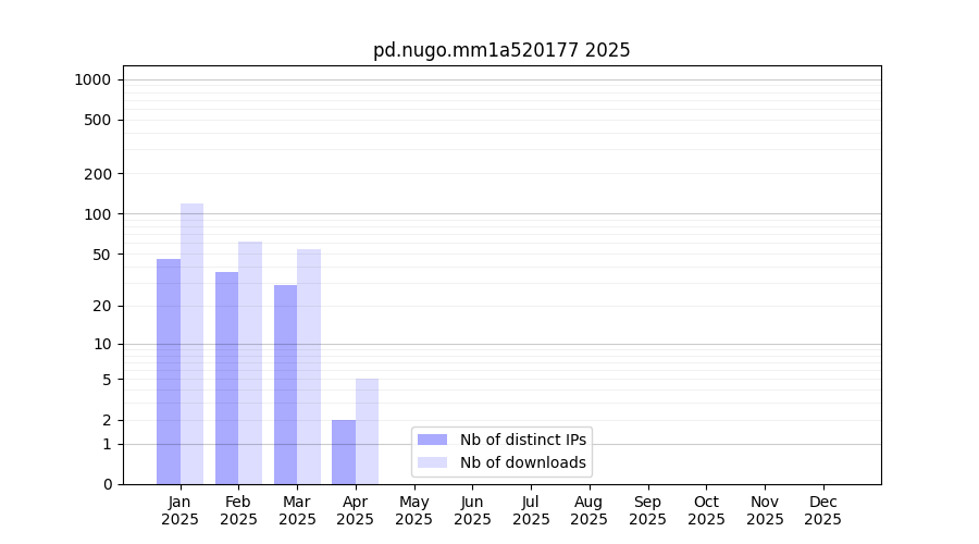 Number of downloads for annotation package pd.nugo.mm1a520177, year by year, from 2025 back to 2014 (years with no downloads are omitted):